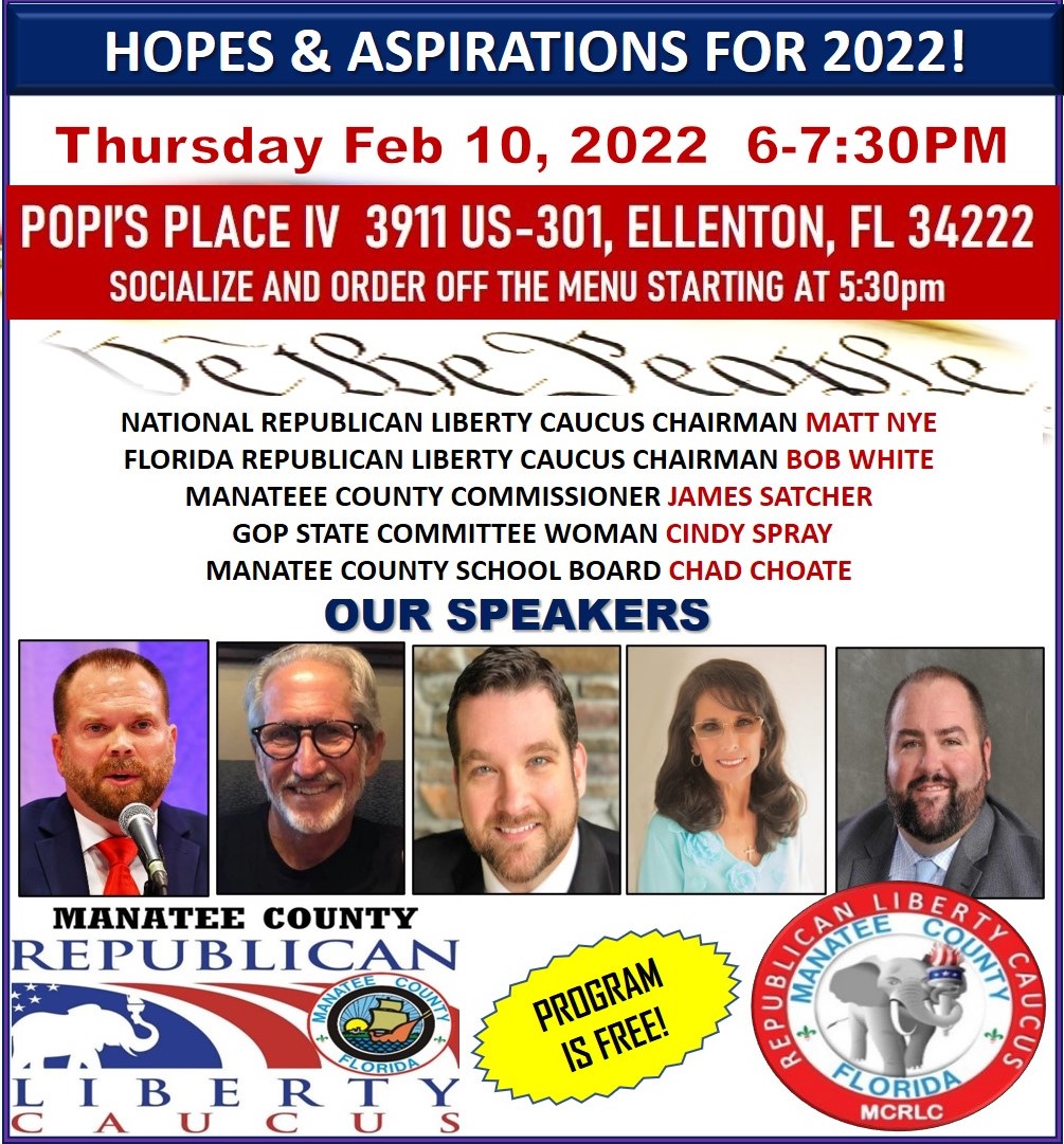 Read on to be informed about important events and simple actions you can take to make a difference. In this Email • Mike Bennett Bio • Hear Republican Liberty Caucus State Chair Bob White Thursday, February 10 • Listen and Share: DF Press Conference Delivers Election Truth Canvassers Found • Hear Michael Rubin on the Justin American Radio Hour Wednesday, February 9 Who: Mike Bennett, Manatee County Supervisor of Elections When: Tuesday February 8 at 6 pm Where: Mixon’s Fruit Farms Honeybell Hall 2525 27th St. E. Bradenton, FL 34208 Questions? Contact Manatee Patriots at 941-301-4636 or Email: info@manateepatriots.us Forward this newsletter to a friend! Our meetings are free, informal and fun, and you can enjoy our free light refreshments at our snack bar. You’ll meet like-minded patriots, learn about our government and our freedoms, and get encouraged, inspired and informed. | | | |